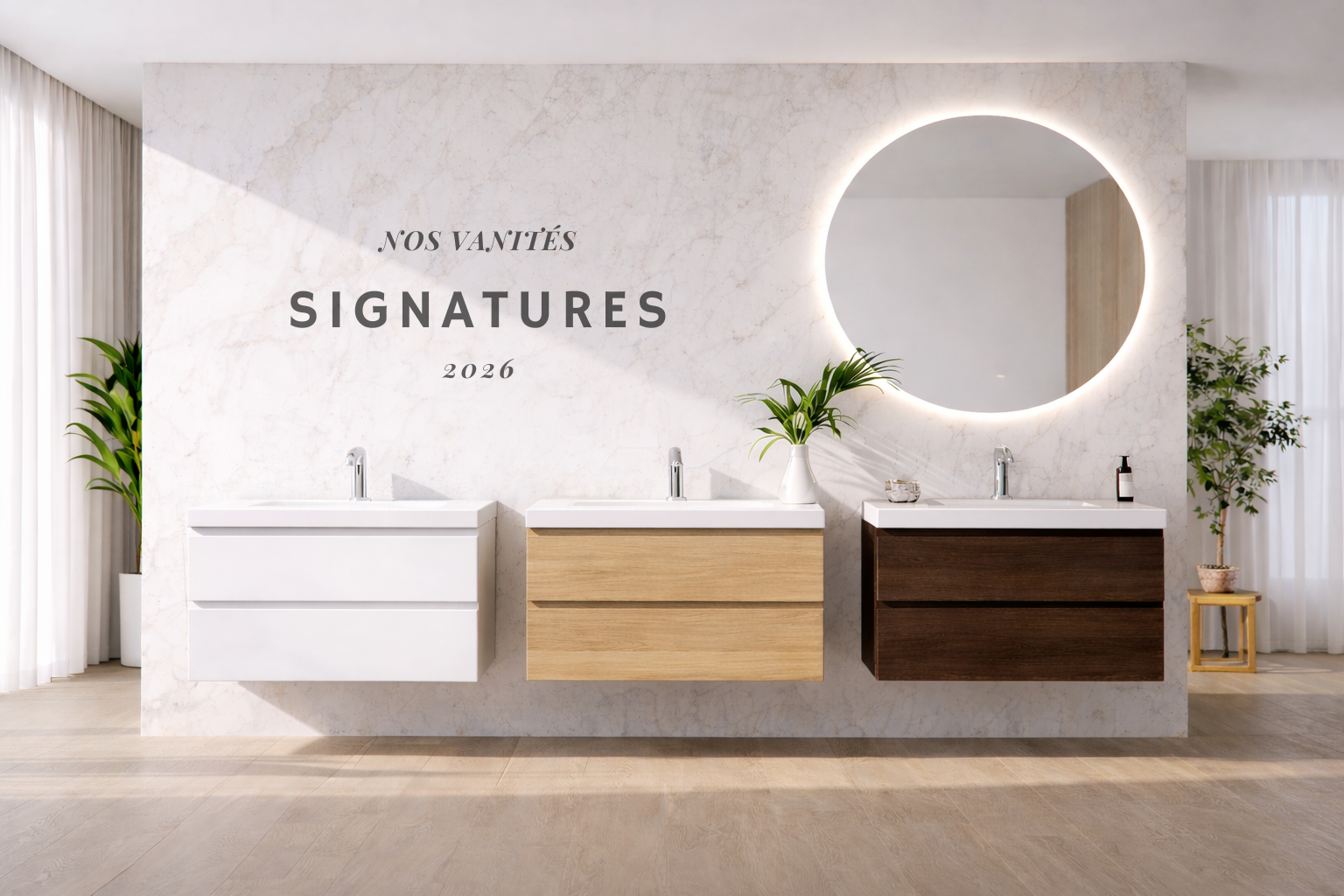 Nous vous proposons un grand éventail de vanités de salle de bain pouvant s’harmoniser à tous les décors. Nos meubles-lavabos sont soigneusement sélectionnés pour leur conception et leur durabilité. Nous avons une multitude de modèles, offerts à des prix compétitifs. Que vous recherchiez un meuble avec une vasque blanche laquée ou encore un lavabo noir mat très tendance, nous avons ce qu’il vous faut.