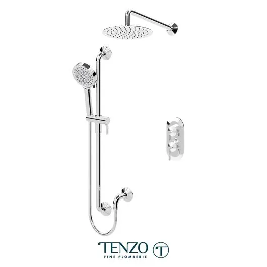 PALT32-20111-XXEnsemble de douche haut de gamme avec valve thermostatique T-Box à deux fonctions, combinant tête de pluie ronde et douchette multifonction. Conçu pour offrir une expérience de douche confortable, précise et luxueuse au quotidien.